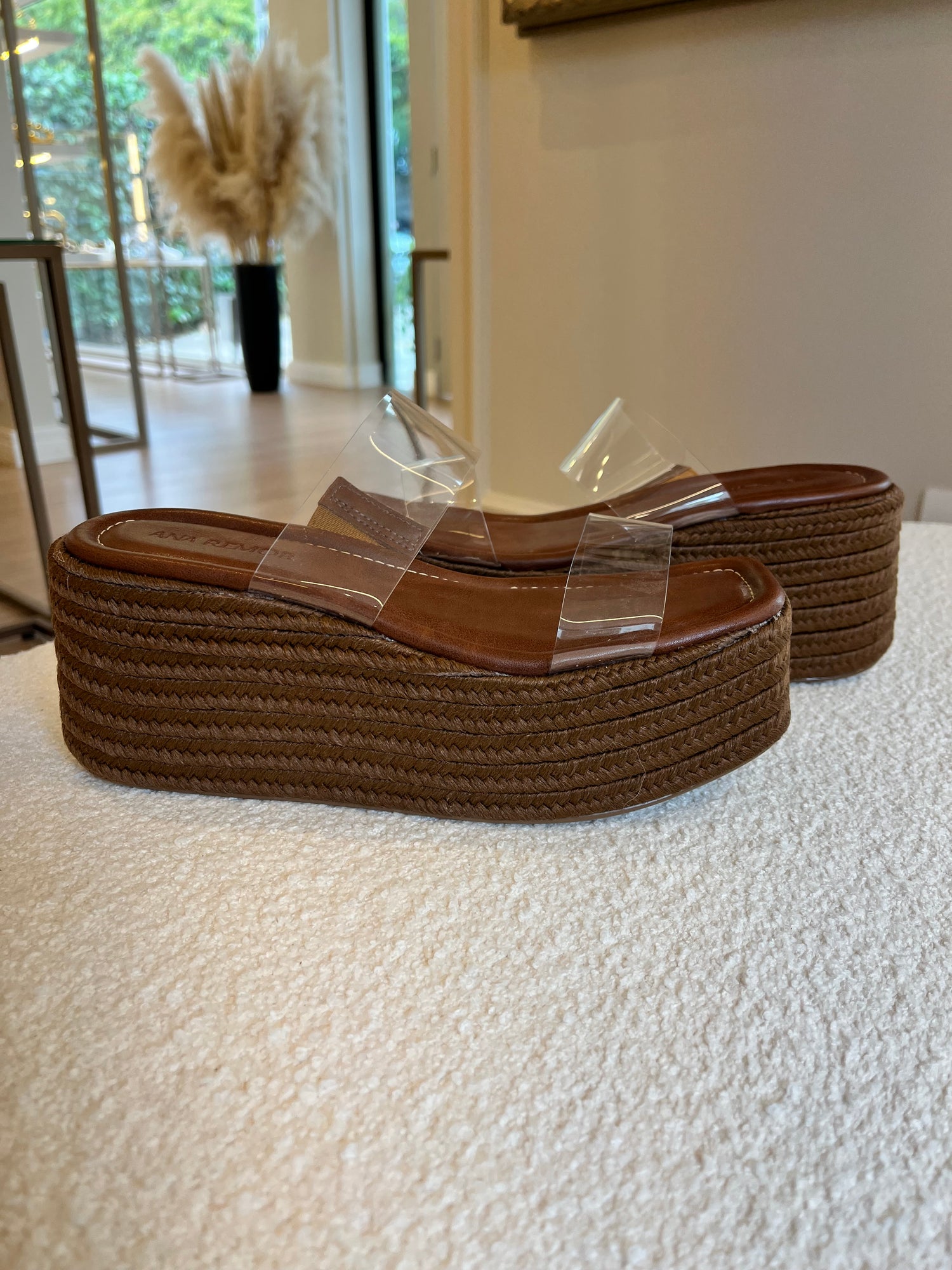 - Detalhe em tiras vinil com solado em cordas marrom.