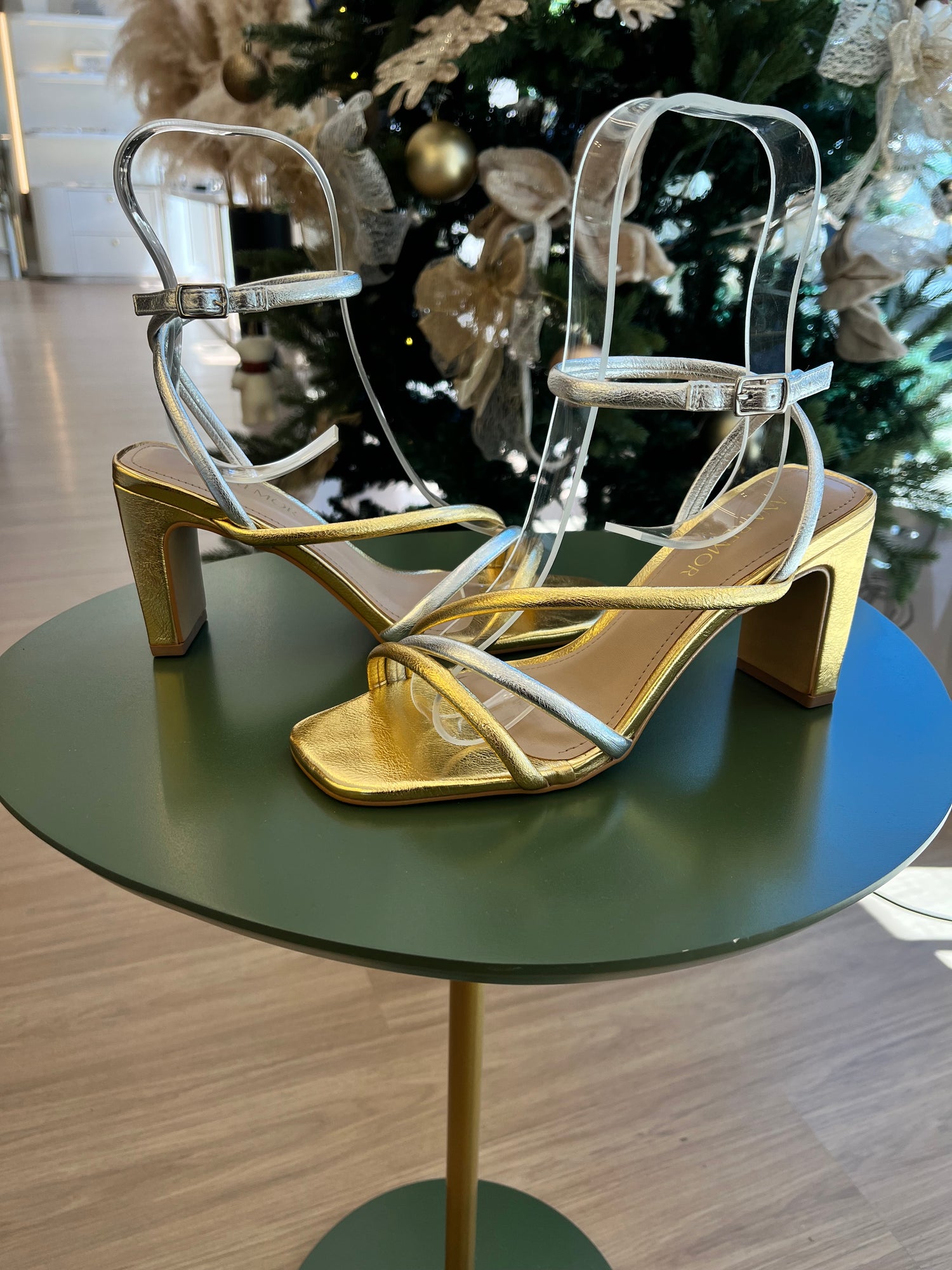 - Detalhe em dourado e prata.