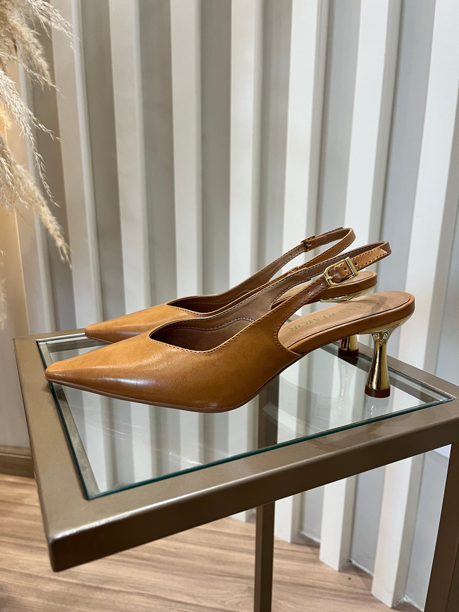 - Salto dourado 6,5 cm.
