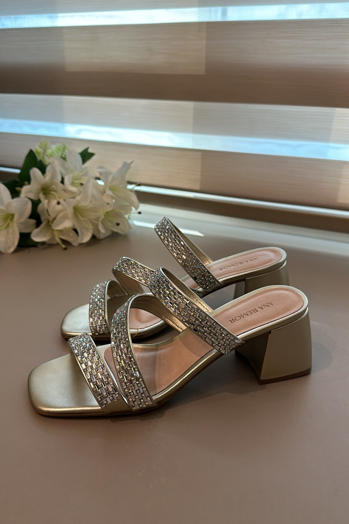 - Detalhes em manta de strass.